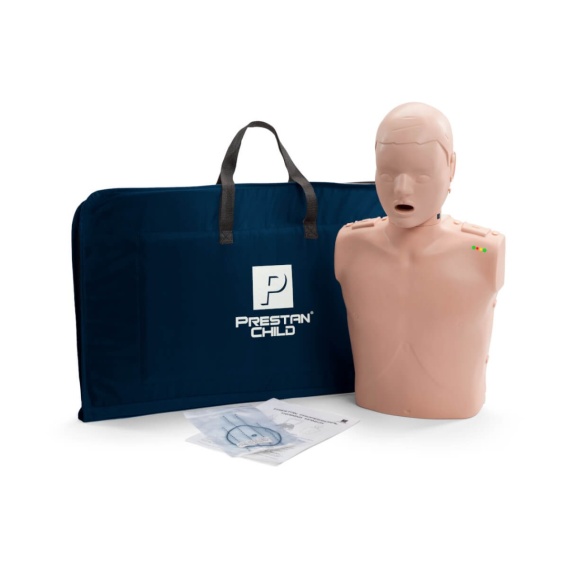 Fantom szkoleniowy Prestan Child to wiernie odwzorowany tors dziecka w wieku około 7 lat, dedykowany do prowadzenia szkoleń z zakresu udzielania pierwszej pomocy i obsługi defibrylatora AED. W manekinie uwzględniono wszystkie niezbędne elementy anatomii dziecka tak, aby umożliwić realistyczny trening podstawowych umiejętności z zakresu resuscytacji krążeniowo-oddechowej. O poprawności wykonywanych uciśnięć informuje widoczna dioda LED, która zmienia kolor na czerwony lub zielony.